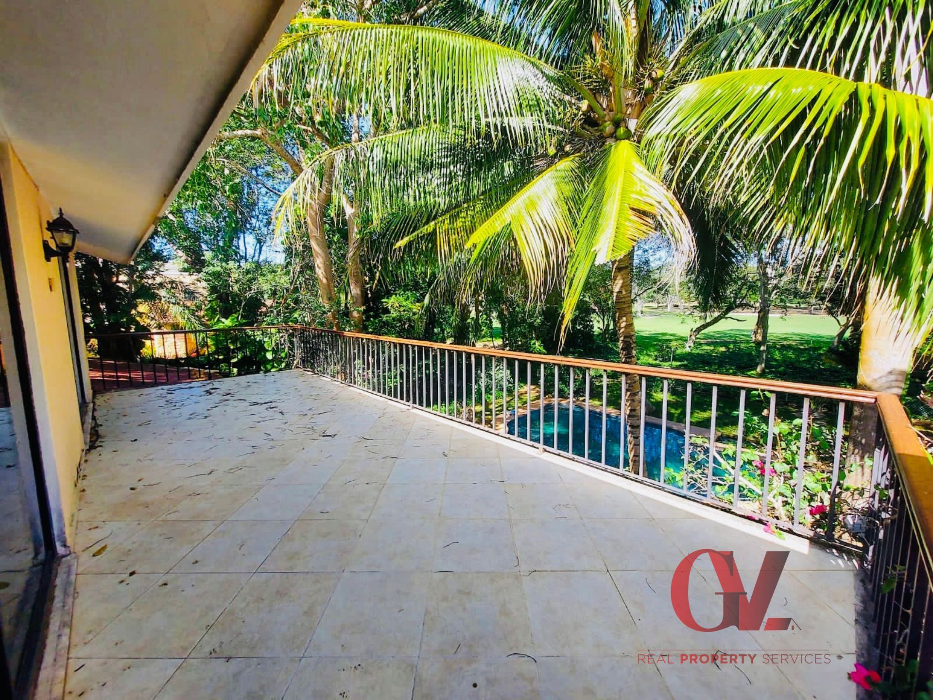 The great treasure that this beautiful residence keeps is all the vegetation that embraces it and keeps it alive. Where you turn is green. Another great feature that it has is that it overlooks the 13th hole of the golf course, it really is a diamond in the rough, since with a renovation it will be spectacular! Upon entering this large residence, there is the hall, a half guest bathroom, and the large living room and dining room with large windows that open onto the terrace and where you have views of the pool and golf course. The master bedroom, which is very large and is located on this floor, has a full bathroom with tub and walk-in closet, plus it also has a beautiful view of the pool area and golf course. The kitchen with an island and with a large area for breakfast table and a beautiful view of the garden and pool area. On this same floor is the laundry room, the service room, the machinary room and the covered garagefor two cars. On the upper floor there is a TV room and two bedrooms each with bathroom and walk-in closet. Both bedrooms share a terrace overlooking the garden and golf course. There are two terraces or areas where two more bedrooms could be built.