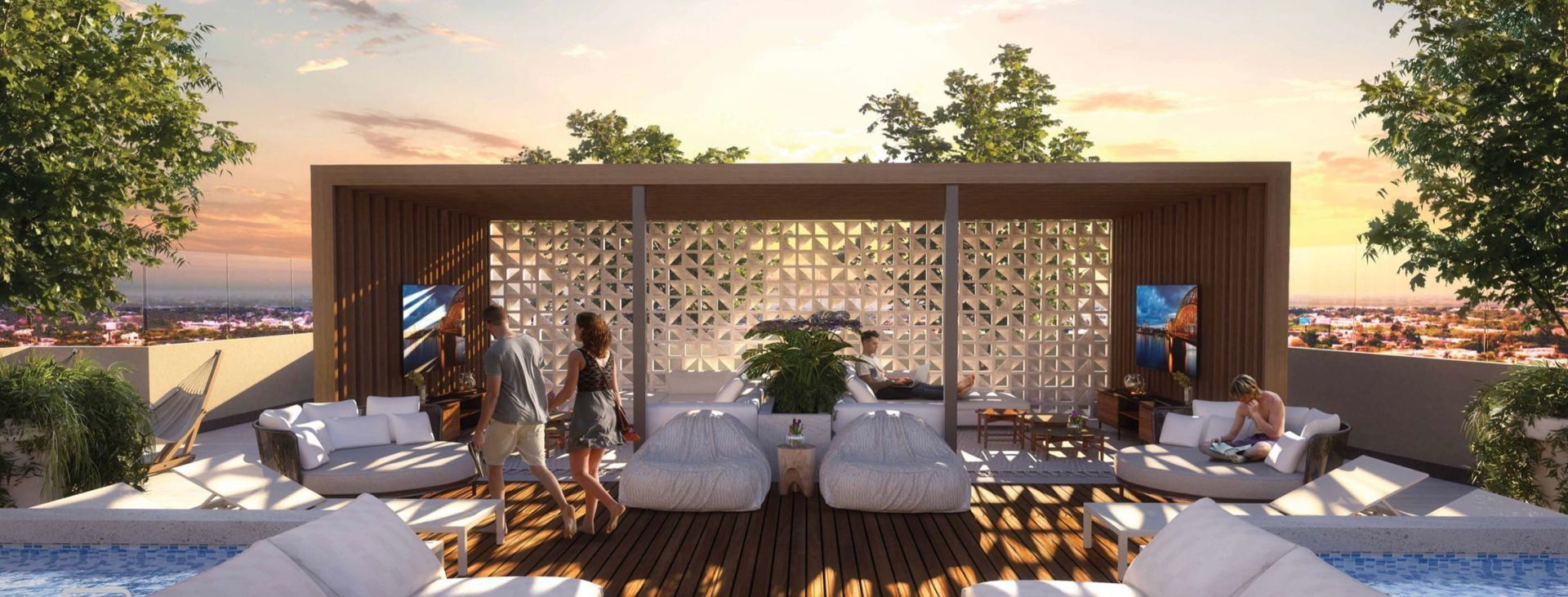 Garden (27,000 m2): Lago, alberca familiar y para adultos, water park en alberca de niños, snack bar y wet bar, 3 canchas de padel, juegos infantiles, asadores, jardín para mascotas y jardín zen ypista de jogging.